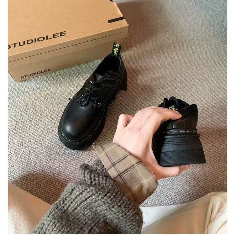 Classic British Style Lace Up Increased Thick Bottom Round Toe Leather Shoes